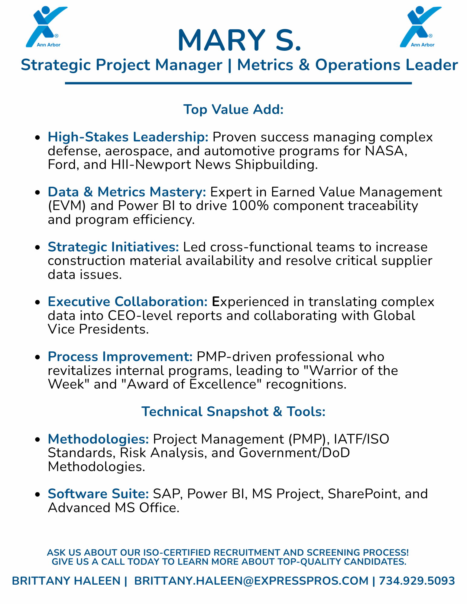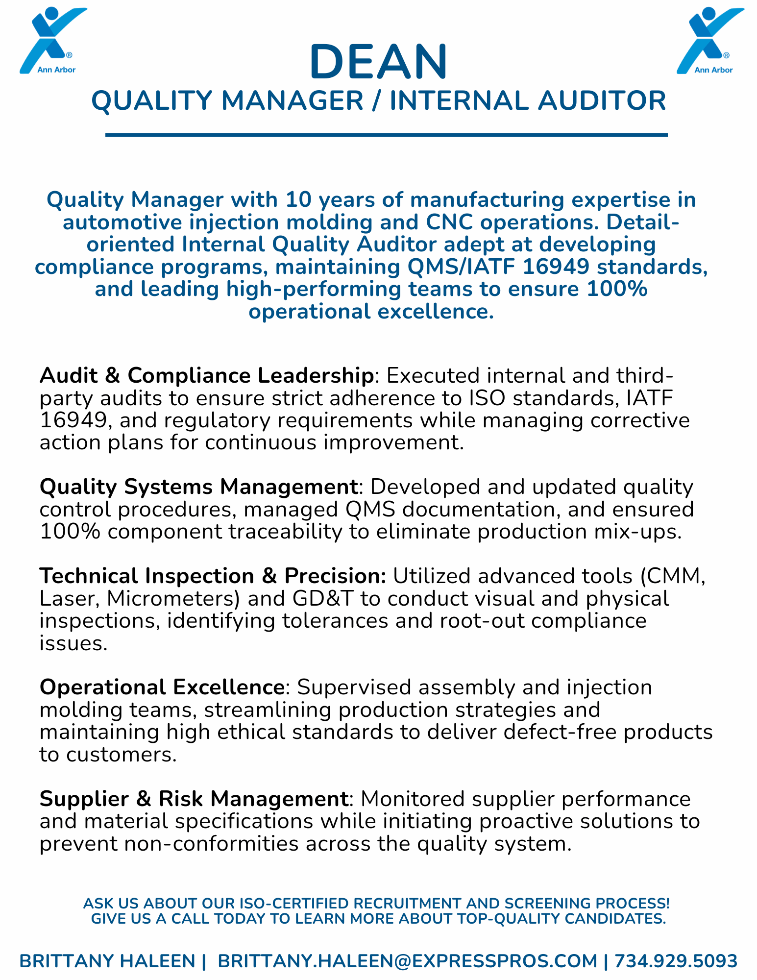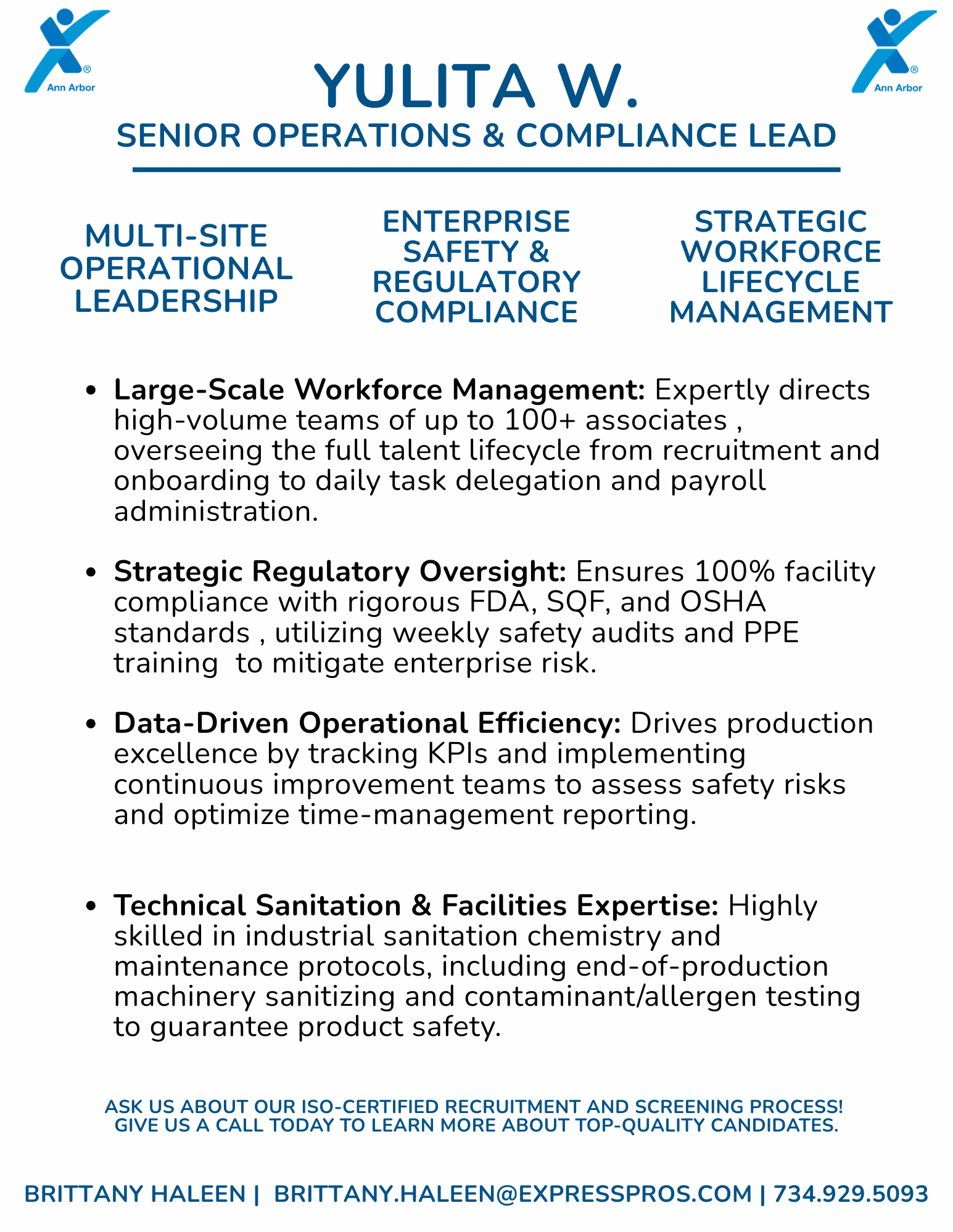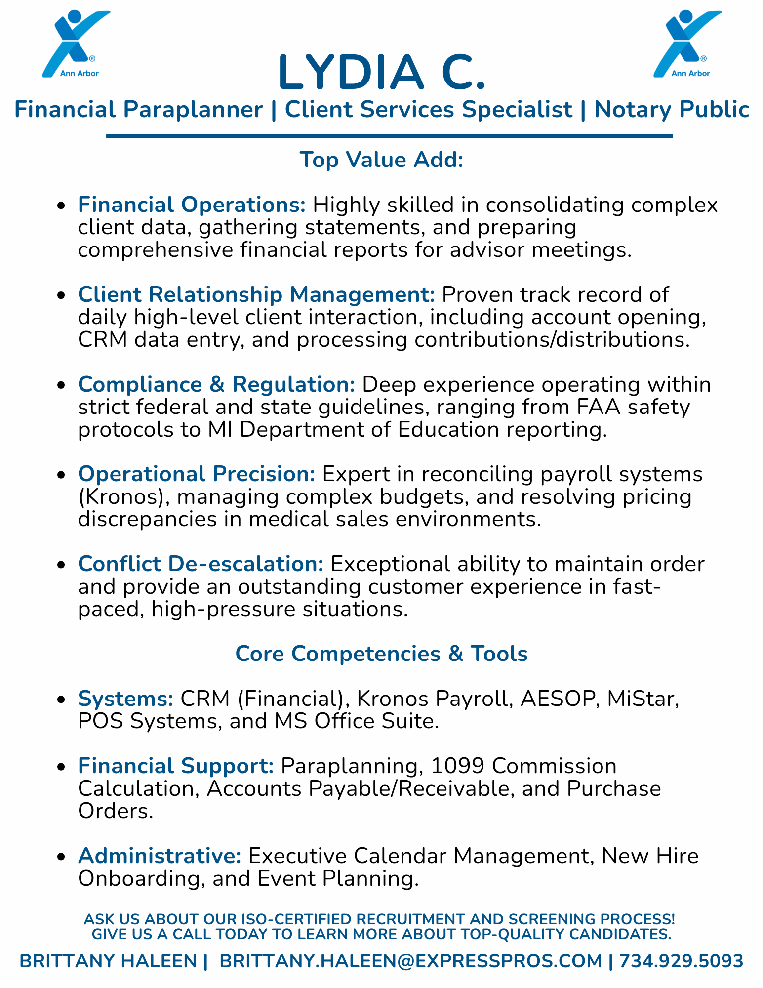 At Express Employment of Ann Arbor, we take the guesswork out of hiring. Our ISO-Certified recruitment and screening process ensures you receive only the most qualified, reliable professionals for your unique needs. Found a candidate below that catches your eye? From skilled trades to professional roles, we’re ready to help you find your next great hire.